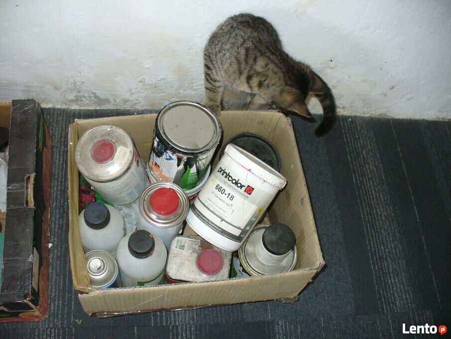 - jak na zdjęciu farby i inne przedmioty z pracowni drukarskiej